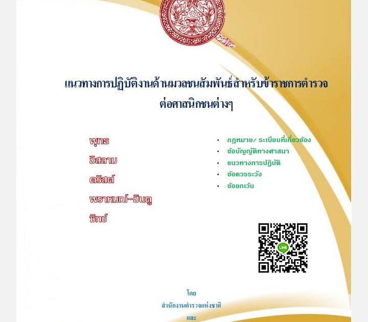 แนวทางการปฏิบัติงานด้านมวลชนสัมพันธ์สำหรับข้าราชการตำรวจ ต่อศาสนิกชนต่างๆ