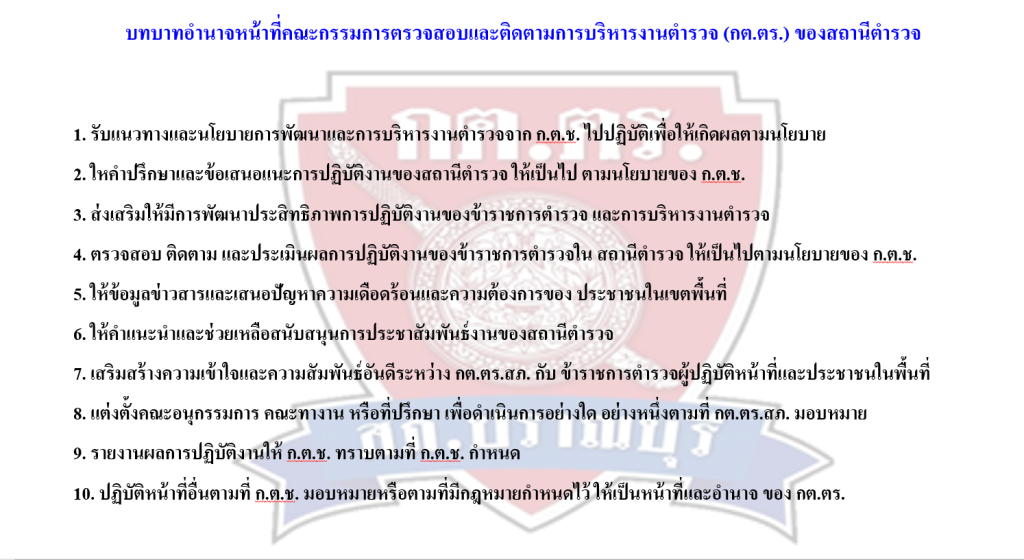 บทบาท อำนาจหน้าที่คณะกรรมการตรวจสอบและติดตามการบริหารงานตำรวจ (กต.ตร.) ของสถานีตำรวจ