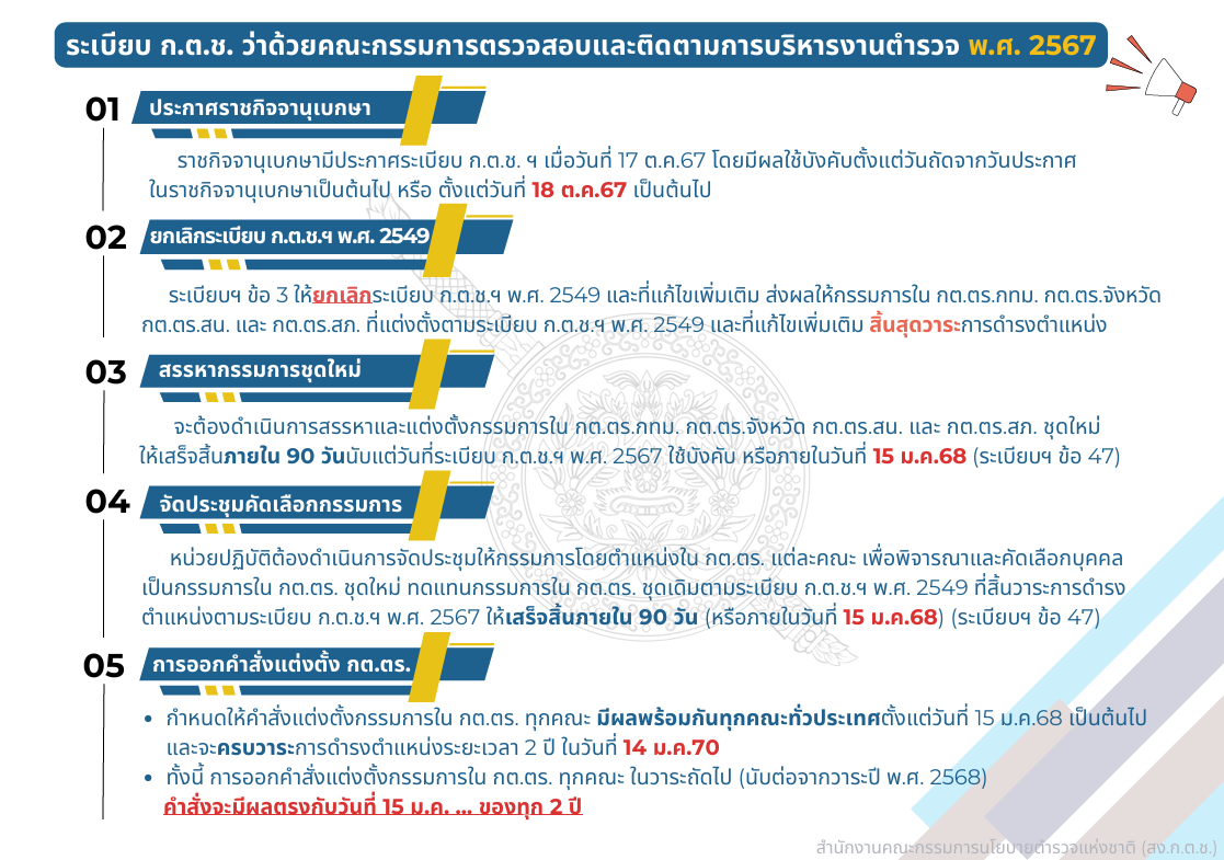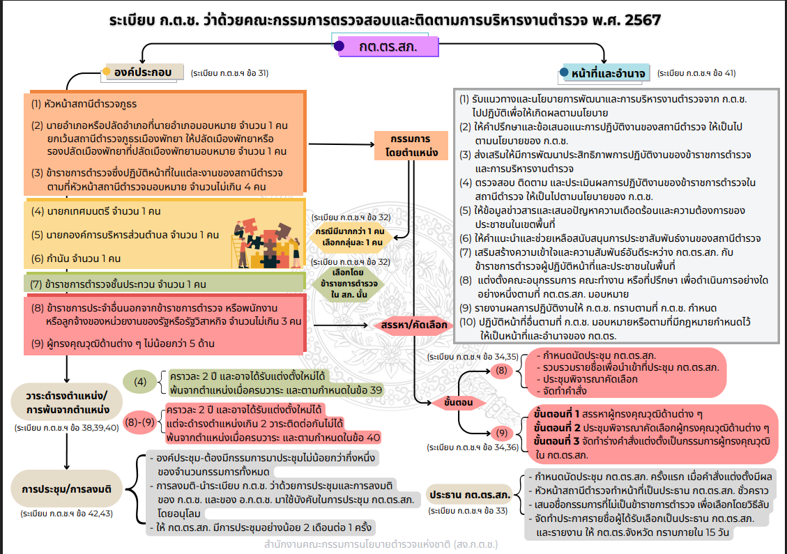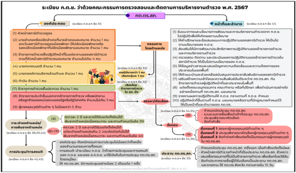 ที่มา: คู่มือการดำเนินการตำมระเบียบ ก.ต.ช. ว่าด้วยคณะกรรมการตรวจสอบและติดตามการบริหารงานตำรวจ พ.ศ. 2567